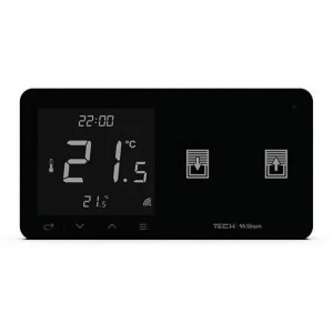 Rozbuduj swój system o inteligentny bezprzewodowy regulator temperatury! Regulator wyposażony jest w duży podświetlany wyświetlacz z dotykowymi przyciskami. Dodatkowo posiada czujnik wilgotności powietrza, a także umożliwia sterowanie temperaturą podłogi dzięki możliwości podpięcia przewodowego czujnika podłogowego NTC (brak w zestawie).