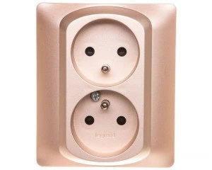LOGI Gniazdo podwójne 2x2P+Z śrubowe 16A 250V Kremowy 25151