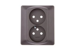 Powyższa plakietka gniazda podwójnego pochodzi z serii Sistena Life. Wykonano ją z bardzo trwałego i funkcjonalnego tworzywa termoplastycznego w kolorze brązowym, wykończenie natomiast jest błyszczące. Model został wyposażony w bolec uziemiający, nie posiada jednak nadruku. Producent zaleca wykonanie montażu podtynkowego, wykorzystując mocowanie zatrzaskowe. Cechuje się stopniem ochrony IP20, co świadczy o odporności na ciała obce o średnicy 12,5 mm. Plakietka gniazda nie będzie chroniona na szkodliwe działanie wody i wilgoci, dlatego nie zaleca się wykorzystywania jej na zewnątrz budynków. Nie posiada ona ochrony przeciwprzepięciowej ani mechanizmu wyrzutu wtyczki. Producent nie wyposażył urządzenia w zabezpieczenie przed dziećmi. Wyprodukował go znany i ceniony na całym świecie producent - LEGRAND. Firma na całym świecie zatrudnia blisko 33 000 pracowników. Posiada 20% udziałów w rynku osprzętu elektroinstalacyjnego. Jest liderem na kluczowych rynkach świata m.in. w Hiszpanii, Francji, Polsce, wielkiej Brytanii, USA, Brazylii i Korei Południowej.
