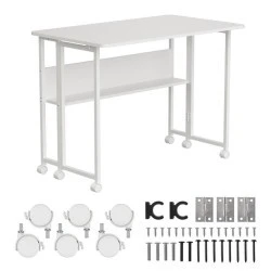 Przemyślana konstrukcja pozwala w kilku prostych krokach zmienić biurko pełnowymiarowe w kompaktowy mebel zajmujący niewiele miejsca. Dzięki sześciu kółkom z blokadą można łatwo przesuwać biurko w dowolne miejsce, a po zatrzymaniu unieruchomić je w wybranej pozycji.