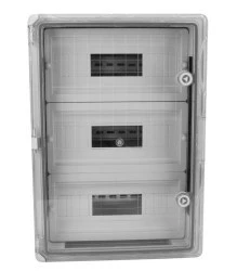 Rozdzielnica natynkowa hermetyczna 3-rzędowa to praktyczne i estetyczne rozwiązanie do organizacji aparatury modułowej w instalacjach elektrycznych. Produkt został wyposażony w transparentne drzwi, które umożliwiają wygodny podgląd zamontowanych zabezpieczeń i aparatury bez konieczności otwierania obudowy.