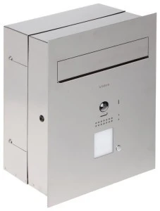 Skrzynka na listy z wideodomofonem DUO, do płytkich słupków, jednowrzutowa wykonana z frezowanej stali szlachetnej, wbudowany cz