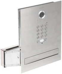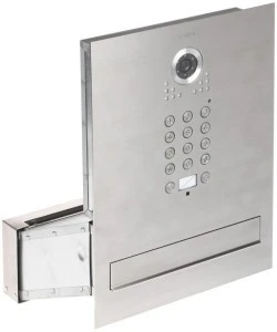 Skrzynka na listy z wideodomofonem, przelotowa, dwulokatorska, jednowrzutowa wykonana z frezowanej stali szlachetnej, wbudowany