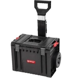 Qbrick System Pro Cart to skrzynka transportowa, która jest przeznaczona do przechowywania i przewozu narzędzi oraz innych materiałów roboczych. Skrzynka została zaprojektowana z myślą o użytkownikach, którzy potrzebują trwałego i wygodnego rozwiązania do przenoszenia narzędzi na placu budowy lub w innych miejscach pracy.