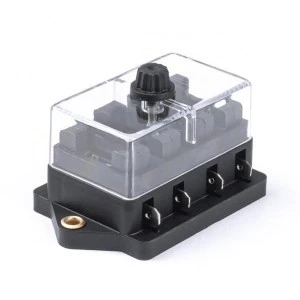 Uniwersalna skrzynka bezpiecznikowa z 4 gniazdami. Precyzyjny rozstaw otworów montażowych oraz wstrząsoodporne materiały zapewniają bezpieczne przechowywanie ogniw.