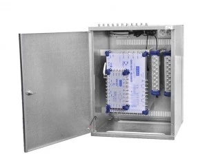 Skrzynka typu AIZ-200* jest przeznaczona do montażu sprzętu RTV/SAT w budynkach wielorodzinnych zgodnie z obowiązującymi przepisami budowlanymi. W skrzynce można zamontować jeden SWK-9216 oraz pięć multiswitchy kaskadowych typu SMK- 216x. Takie rozwiązanie pozwala dostarczyć sumę sygnałów RTV/SAT do 96 abonentów. Dodatkowo poprzez umieszczenie na obudowie SWK-9216 MultiBAS rozgałęźnika magistrali typu SSK-918 istnieje możliwość rozbudowy instalacji multiswitchowej o kolejne punkty odbiorcze. Możliwe jest również zamontowanie wzmacniacza STWK-810 z dedykowanym zasilaczem. AIZ-200 to wygodny i kompaktowy sposób na wykonanie instalacji AIZ. Dzięki zamykanej obudowie można ograniczyć dostęp do tej części instalacji teletechnicznej. Na górze obudowy zamontowane są złącza typu F, do których należy podpiąć sygnały z pola antenowego. Dzięki temu szafkę można przygotować w dowolnym miejscu podpinając wszystkie kable, które konieczne są do zestawienia magistrali multiswitchy. Tak przygotowany zestaw możemy wygodnie zamontować w gotowej szafie RACK i na koniecz podpiąć kable abonenckie lub pole krosowe. Cechy produktu: