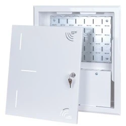 Skrzynka pozwala na organizację wszystkich rodzajów kabli teletechnicznych w jednym miejscu, oraz na zamontowanie elementów pasywnych i rozgałęzień. Połączenie estetycznego wykończenia z praktycznym zastosowaniem. Wykonana z solidnej blachy zabezpieczonej antykorozyjnie.