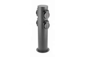 Rodzina opraw CORTA idealnie wpisuje się w nowoczesne aranżacje ogrodów oraz fasad budynków. Słupek został wyposażony w 4 gniazda prądowe (shuko) o maksymalnym, łącznym obciążeniu 3500 W.