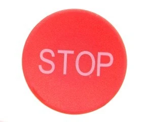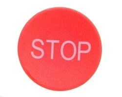 Soczewka przycisku 22mm płaska czerwona z symbolem STOP M22‑XD‑R‑GB0 218194