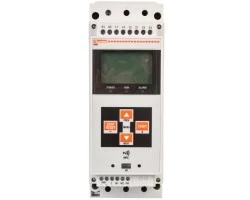 · Analogowy czujnik temperatury do zabezpieczania tyrystorów, ze wskazaniami na wyświetlaczu oraz progami dla alarmu i alarmu wstępnego.
