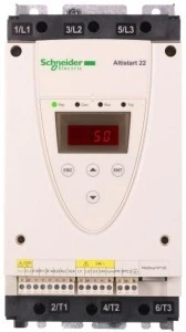 Softstart ATS22 3x240..440VAC 18,5kW 32A. rodzina produktów: Altistart 22 - typ produktu: urządzenie łagodnego rozruchu - przeznaczenie urządzenia: silniki asynchroniczne - specjalne zastosowanie produktu: zastosowania standardowe oraz o dużej inercji i dynamice - nazwa komponentu: ATS22 - liczba faz w sieci: 3 fazy - moc silnika w kW: 15 kW przy 400 V, 15 kW przy 440 V, 18,5 kW przy 500 V, 7,5 kW przy 230 V - nastawiony fabrycznie prąd: 27 A - Kategoria użytkowania: AC-53A - rodzaj rozruchu: rozruch ze sterowaniem momentem (prąd ograniczony do 3,5 In). Zalety: Zintegrowany by-pass oraz szereg funkcji bezpieczeństwa.. Redukcja kosztów instalacji.. Uproszczony montaż. Zabezpieczenie instalacji, sofstartu oraz silnika.. Oszczędność przestrzeni montażowej oraz opcji, w pełni zintegrowany funkcyjnie ATS22.... Zastosowanie: - Pompy, Wentylatory, Kompresory, Przenośniki..