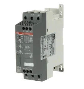 Softstart PSR30-600-70 ma znamionowy prąd 30 A przy napięciu pracy w zakresie od 208...600 V AC. Znamionowe napięcie sterowania 100...240 V AC przy częstotliwości 50/60 Hz. Softstart PSR realizuje poprzez sterowanie w dwóch fazach funkcję łagodnego rozruchu i zatrzymania. Posiada wbudowane obejście (bypass) ułatwiający instalację i oszczędzający energię. Sygnały RUN i TOR są dostępne z wyjściami przekaźnikowymi w stanie NO (stan normalnie otwarty). Rampy rozruchu i zatrzymania i czas można łatwo ustawić za pomocą trzech potencjometrów od frontu softstartu. Softstart PSR może być używany w połączeniu z ręcznym rozrusznikiem silnika (MMS) firmy ABB, co ułatwiają dedykowane zestawy są zestawy połączeń mechanicznych. Inną popularną opcją jest komunikacja Fieldbus, którą można włączyć za pomocą zewnętrznego adaptera i wtyczki Fieldbus. Seria PSR to nasze najbardziej kompaktowe softstarty o podstawowej funkcjonalności. Nadają się do małych silników trójfazowych o prądach znamionowych od 3 do 105 A i mogą obsłużyć do 100 rozruchów na godzinę. Typowe zastosowania to rozruchy pomp, wentylatorów, sprężarek i przenośników.
