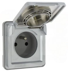 PLEXO55 Gniazdo pojedyncze z/u z klapką szare 069555
