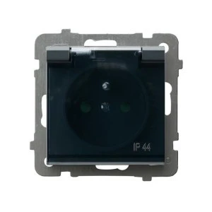 SONATA Gniazdo bryzgoszczelne z uziemieniem IP‑44 z przesłonami torów wieczko przezroczyste szary grafit GPH‑1RZP/m/73/d