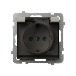 SONATA Gniazdo bryzgoszczelne z/u IP44 klapka przezroczysta czarny metalik GPH-1RZ/m/33/d