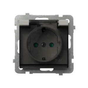 LOGI Gniazdo hermetyczne z klapką 2P+Z IP44 Schuko śrubowe 16A 250V Grafit 25264
