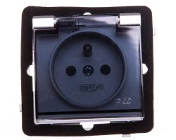 SONATA Gniazdo bryzgoszczelne z/u IP44 klapka przezroczysta czarny metalik GPH-1RZ/m/33/d