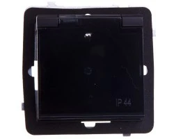 Simon Basic Gniazdo wtyczkowe Schuko IP44 z przesł. (moduł) 16A, 250V,zaciski śrubowe czarny. Klapka transp. BMGSZ1BZ.01/49A
