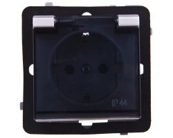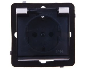 SONATA Gniazdo bryzgoszczelne z/u IP44 klapka przezroczysta czarny metalik GPH-1RZ/m/33/d