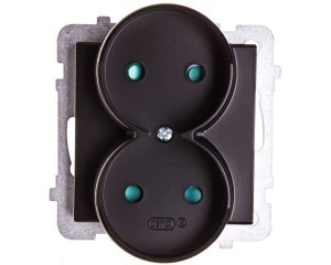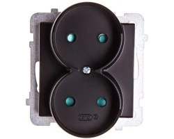 Simon Basic Gniazdo wtyczkowe podwójne bez uziemienia (moduł) z przesł. torów prąd.,16A, 250V, zac. śrubowe czarny BMG2MZ.01/49