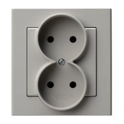 LOGI Gniazdo podwójne 2x2p+Z Schuko kompletne śrubowe 16A 250V Srebrny 25213