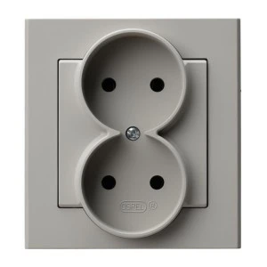 LOGI Gniazdo podwójne 2x2P kompletne śrubowe 16A 250V Srebrny 25214