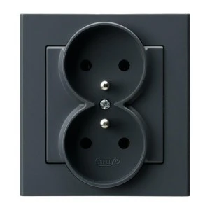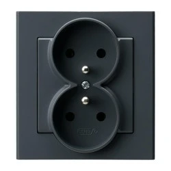 SONATA Gniazdo podwójne z uziemieniem kompletne z ramką szary grafit GP‑2RZ/73