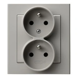 Gniazdko elektryczne szare podwójne ramka stal szczotkowana GN-SS02S