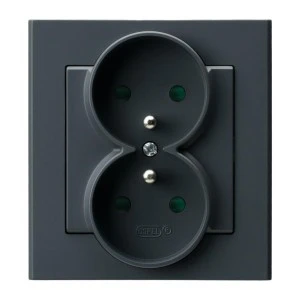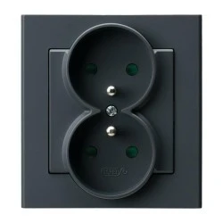 SONATA Gniazdo podwójne z uziemieniem z przesłonami torów prądowych, kompletne z ramką szary grafit GP‑2RZP/73