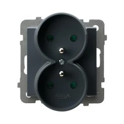 SONATA Gniazdo podwójne z uziemieniem z przesłonami torów prądowych, moduł bez ramki szary grafit GP‑2RRZP/m/73