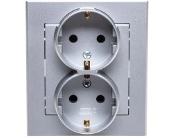 SONATA Gniazdo podwójne z/u Schuko z przesłonami srebro mat GP-2RSP/38