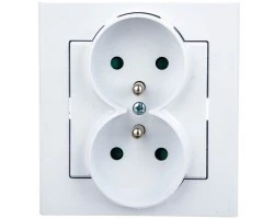 AS Gniazdo podwójne z/u z przesłonami białe GP-2GZP/00