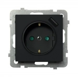 Sonata Gniazdo pojedyncze z uziemieniem schuko z przesłonami torów prądowych, z ładowarką USB Czarny metalik GP‑1RSPUSB/m/33