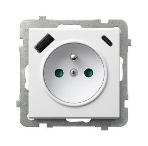 SONATA Gniazdo pojedyncze z uziemieniem z przesłonami torów prądowych, z ładowarką USB A+C biały mat GP‑1RZPUSBAC/m/75