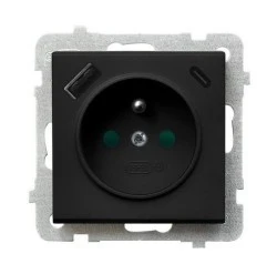 SONATA Gniazdo pojedyncze z uziemieniem z przesłonami torów prądowych, z ładowarką USB A+C czarny metalik GP‑1RZPUSBAC/m/33