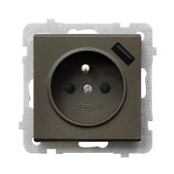 Sonata Gniazdo pojedyncze z uziemieniem z przesłonami torów prądowych z ładowarką USB czekoladowy metalik GP‑1RZPUSB/m/40