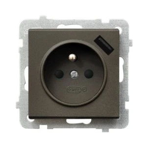 Karo Gniazdo pojedyncze z uziemieniem z przesłonami torów prądowych z ładowarką USB czekoladowy metalik GP-1SZPUSB/m/40