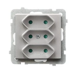 Sonata Gniazdo potrójne EURO z przesłonami torów prądowych srebro mat GP‑3RP/m/38