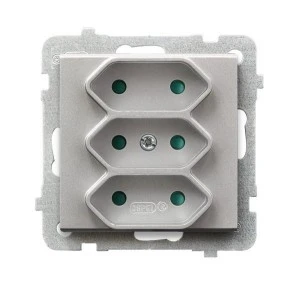 SONATA Gniazdo potrójne b/u 2,5A EURO srebro mat GP-3R/m/38