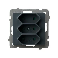 SONATA Gniazdo potrójne EURO z przesłonami torów prądowych szary grafit GP‑3RP/m/73