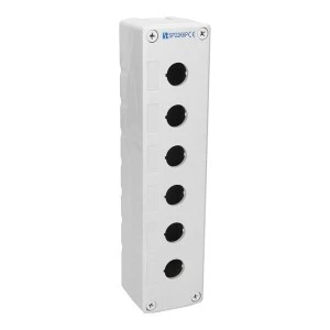 Obudowa z tworzywa ABS+PC z uszczelką i otworami Ø22. W zagłębieniach przy otworach istnieje możliwość zastosowania etykiet ST22-7201. Możliwość zmiany ilości otworów poprzez zastosowanie zaślepki SP22.
