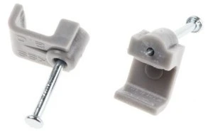 Podczas montażu zacisków należy stosować odpowiednie środki ochrony oczu. Kabel prostokątny - zaciski. Formowane zaciski kabli PVC do kabli dwuprzewodowych +ECC i potrójnych +ECC do montażu powierzchniowego. Komplet z utwardzonymi paznokciami.