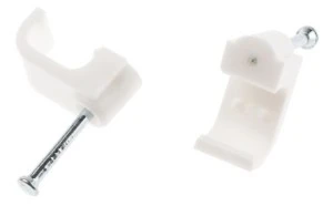 Podczas montażu zacisków należy stosować odpowiednie środki ochrony oczu. Kabel prostokątny - zaciski. Formowane zaciski kabli PVC do kabli dwuprzewodowych +ECC i potrójnych +ECC do montażu powierzchniowego. Komplet z utwardzonymi paznokciami.