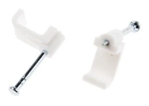 Podczas montażu zacisków należy stosować odpowiednie środki ochrony oczu. Kabel prostokątny - zaciski. Formowane zaciski kabli PVC do kabli dwuprzewodowych +ECC i potrójnych +ECC do montażu powierzchniowego. Komplet z utwardzonymi paznokciami.