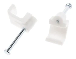 Podczas montażu zacisków należy stosować odpowiednie środki ochrony oczu. Kabel prostokątny - zaciski. Formowane zaciski kabli PVC do kabli dwuprzewodowych +ECC i potrójnych +ECC do montażu powierzchniowego. Komplet z utwardzonymi paznokciami.