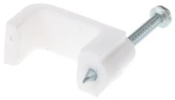 Podczas montażu zacisków należy stosować odpowiednie środki ochrony oczu. Kabel prostokątny - zaciski. Formowane zaciski kabli PVC do kabli dwuprzewodowych +ECC i potrójnych +ECC do montażu powierzchniowego. Komplet z utwardzonymi paznokciami.