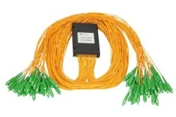 Splitter PLC o symetrycznym podziale mocy 1:64 ze złączami zarówno na wejściu jak i wyjściu. Obudowa typu ABS umożliwia bezpieczny montaż w przełącznicach rack lub zewnętrznych szafkach światłowodowych.