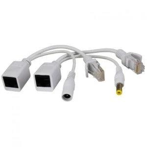 Adapter P-POE1 służy do przesyłania sygnału TCP IP i zasilania za pomocą jednej skrętki komputerowej. W przypadku transmisji danych (TCP IP) wykorzystywane są pary 1-2 i 3-6 natomiast zasilanie transmitowane za pomocą par 4-5 i 7-8.