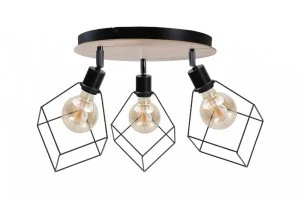 Trzypunktowy spot na przegubach z czarnymi drutami w kształcie sześcianu, wzbogacony o drewniany element, to doskonałe połączenie funkcjonalności i designu. Oprawki E27 umożliwiają wykorzystanie żarówek o maksymalnej mocy 60W, zapewniając przyjemne i skuteczne oświetlenie w każdym pomieszczeniu.