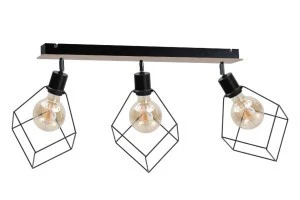 Trzypunktowy spot na przegubach z czarnymi drutami w kształcie sześcianu, wzbogacony o drewniany element, to doskonałe połączenie funkcjonalności i designu. Oprawki E27 umożliwiają wykorzystanie żarówek o maksymalnej mocy 60W, zapewniając przyjemne i skuteczne oświetlenie w każdym pomieszczeniu.